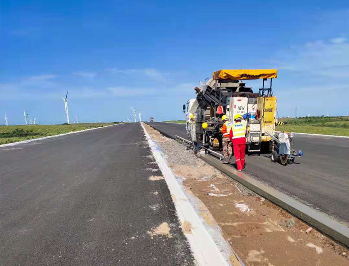 NC1300混凝土滑模攤鋪機在甘肅敦煌做的2米寬路肩